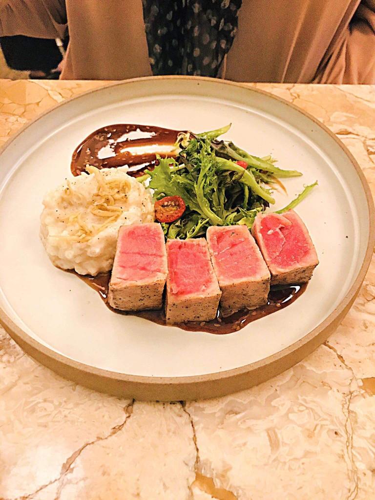 Rare Red Tuna – coconut risotto, pickled shallots, crispy chilli lime dressing.