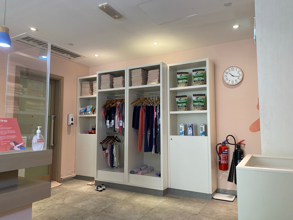 The studio itself, as with most things in the city, ran like a well-oiled machine. It’s not particularly plush or fancy, no great view of the marina or beach etc but it felt efficient and precise and there was sufficient space for its purpose. The reception faces you the minute you enter and newbies are given a basic biodata form to complete, to convey which classes you are taking, any specific health concerns etc. You get a locker, a towel, and yoga mats are also provided should you not have one. They sell yoga outfits, healthy food and drinks near the counter. The locker room has all that you need if you plan to go to work/ head for another appointment after – showers, lavatories, hair dryers and even a hot iron curler.