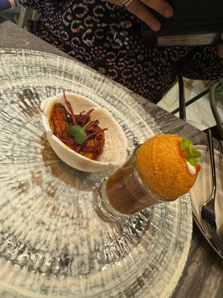 The Dahi Puri Shooters with crab meat and crab rasam. Again perhaps one can say it had its roots in Kayra’s Kerala Dahi Puri but this time, the Coast sequel brings in sprinkles of caviar and a delectable tanginess of the crab rasam. Once you pop it in your mouth, the fusion harmonizes together in such a satisfying conclusion.